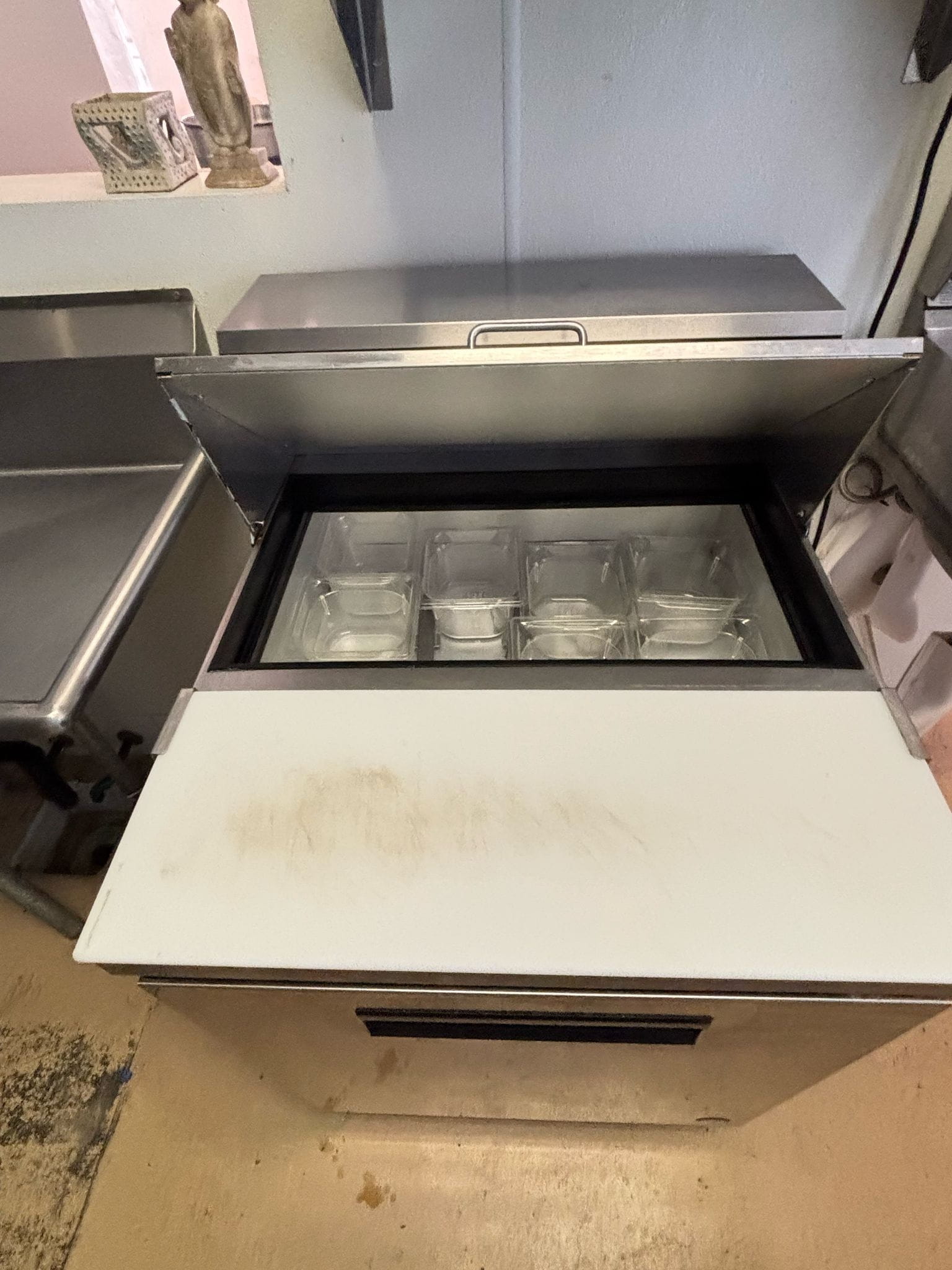 27-inch prep refrigerator with one door. Ideal for smaller kitchens.