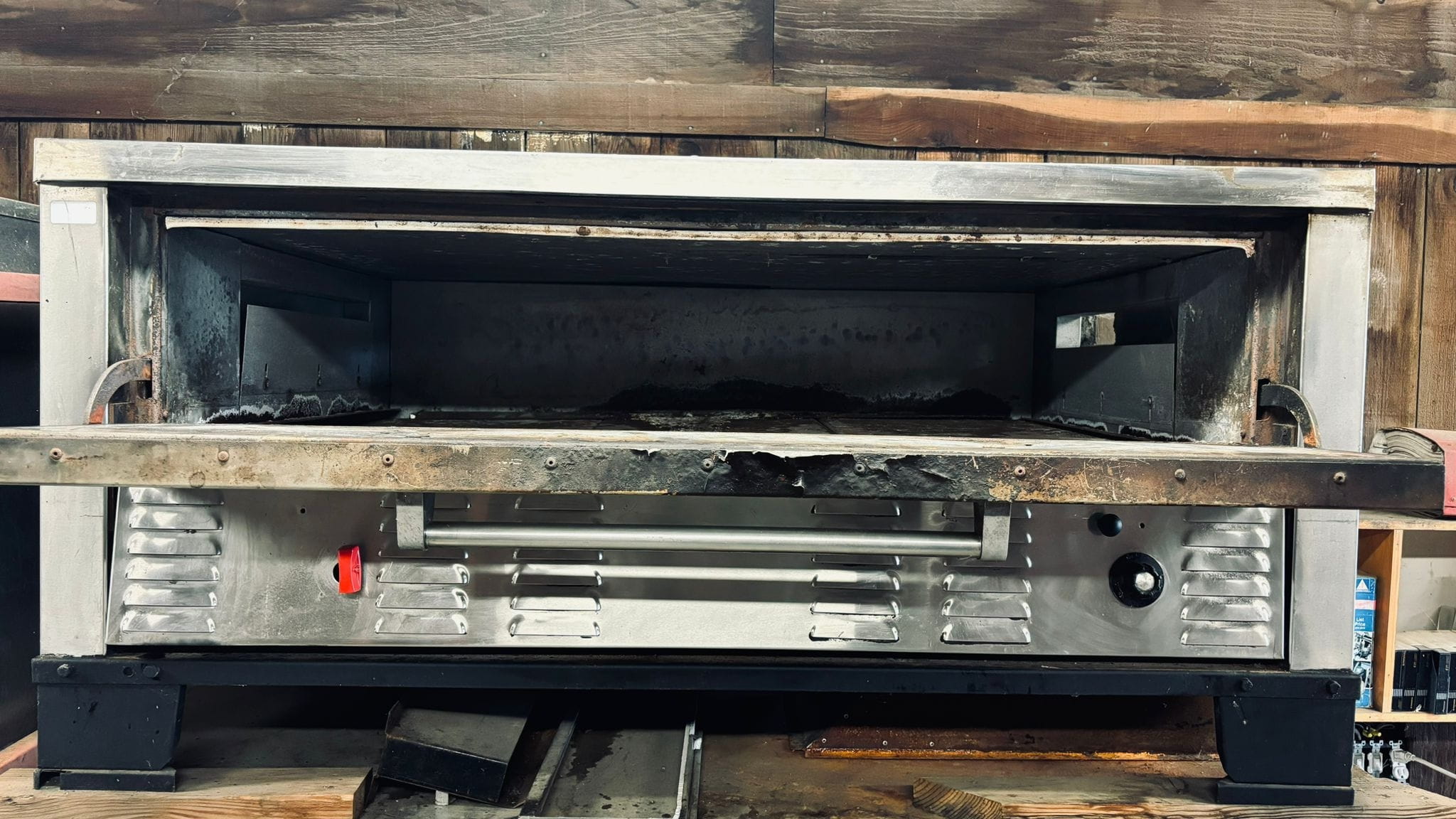 Heavy-duty commercial oven designed for baking bread, pastries, and other food items. Built for consistent heat performance.
